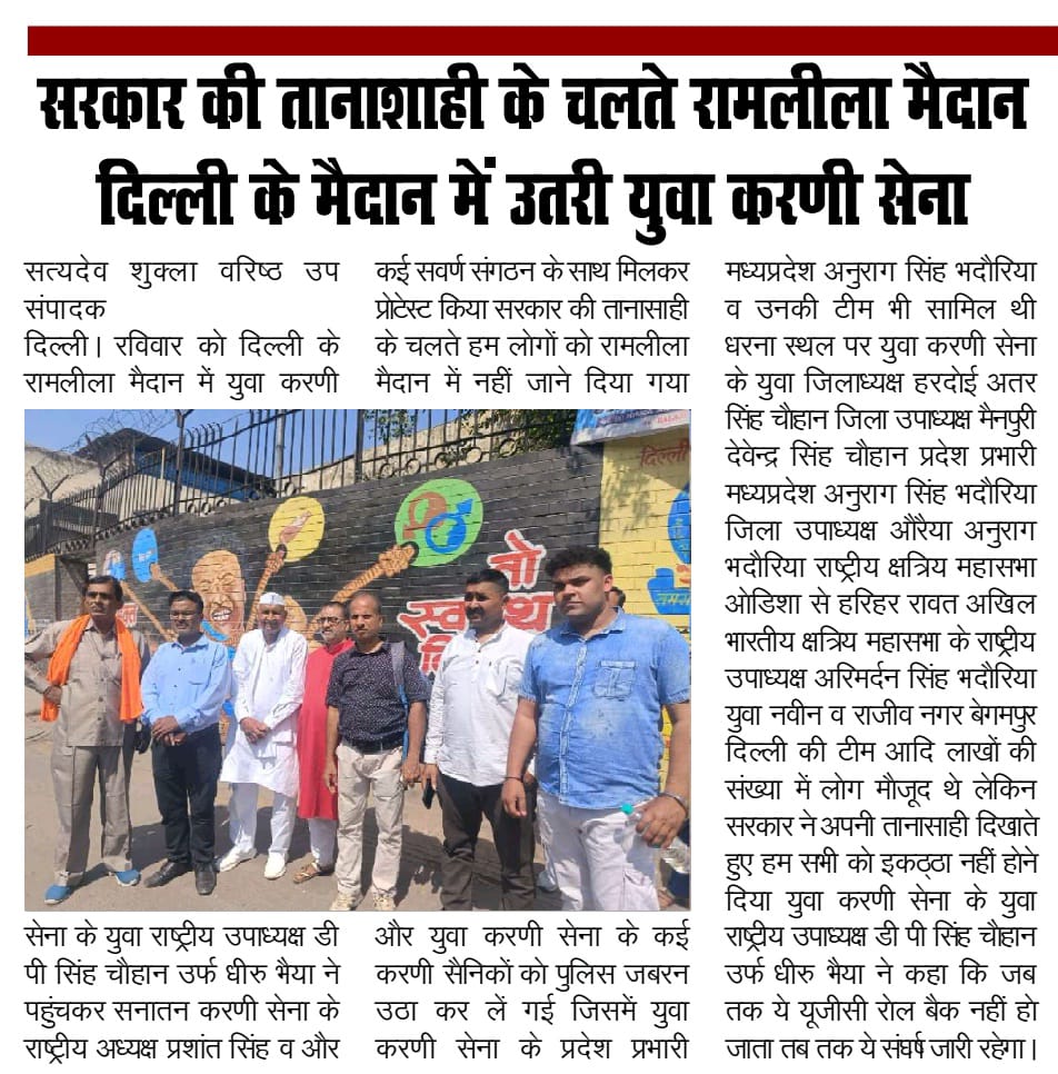 रामलीला मैदान दिल्ली में युजीसी रोल बैक आंदोलन में शामिल हुई युवा करणी सेना